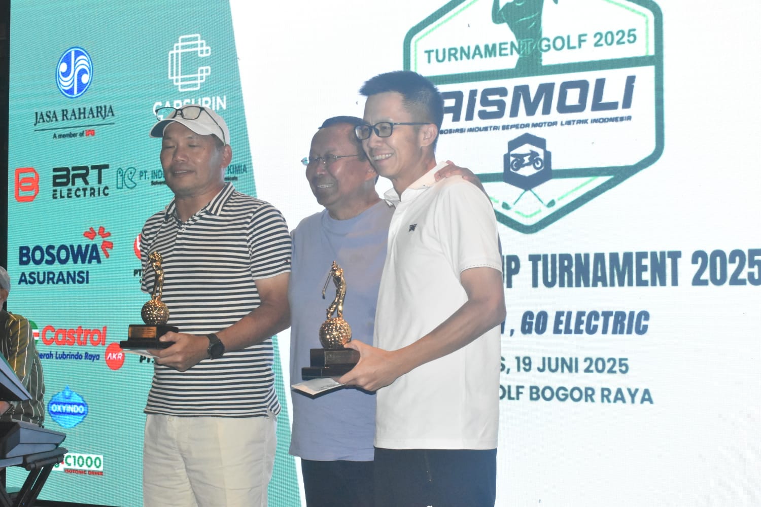 Asosiasi Industri Sepeda Motor Listrik Indonesia (Aismoli) bersama Ceria Golf Club menggelar turnamen golf pertamanya di Klub Golf Bogor Raya pada Kamis (19/6). Tak kurang dari 140 peserta mengikuti turnamen yang dimulai pada pukul 12:30 ini.