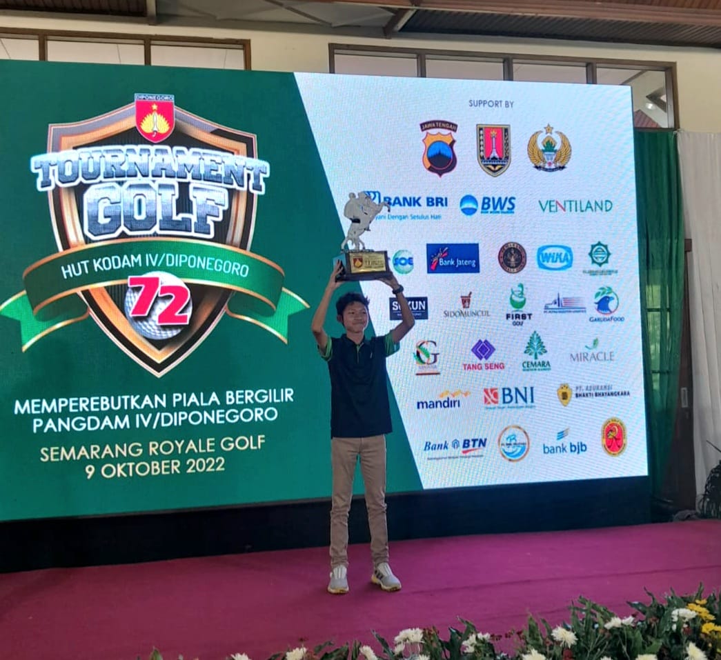 Pegolf muda yang sering tampil mewakili daerahnya dalam event golf berskala nasional dan regional yang berlangsung di Jakarta, berhasil merebut Piala Bergilir Pangdam IV/Diponegoro yang berlangsung di Semarang Royal Golf pada Minggu (9 Oktober 2022).