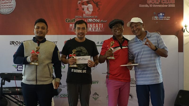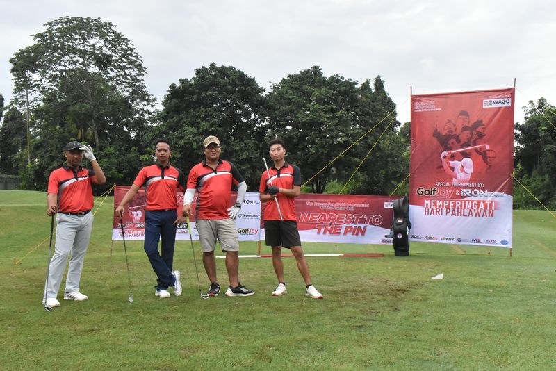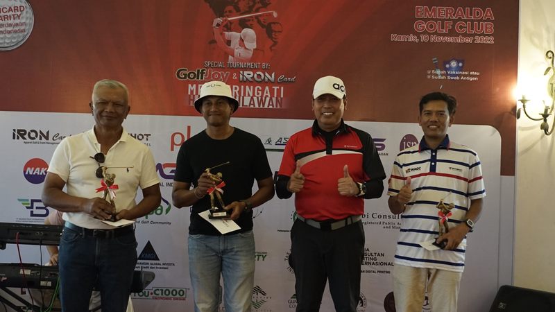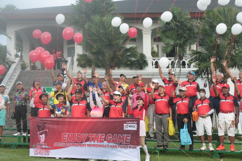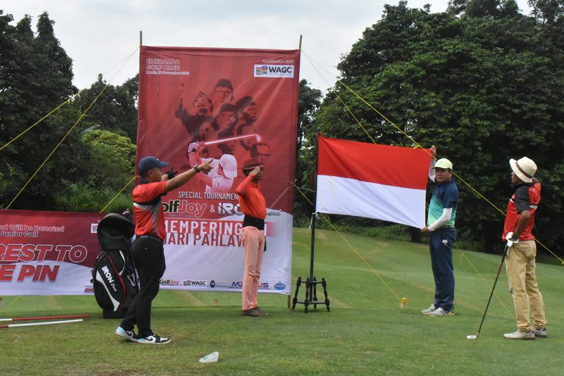Para golfer dengan berseragam nuansa merah-putih tampil bertanding dalam turnamen golf Memperingati Hari Pahlawan 10 November 2022 yang diselenggarakan Media GolfJoy-Ironcard yang berlangsung di Emeralda Golf Club, Tapos – Kota Depok, Jawa Barat.