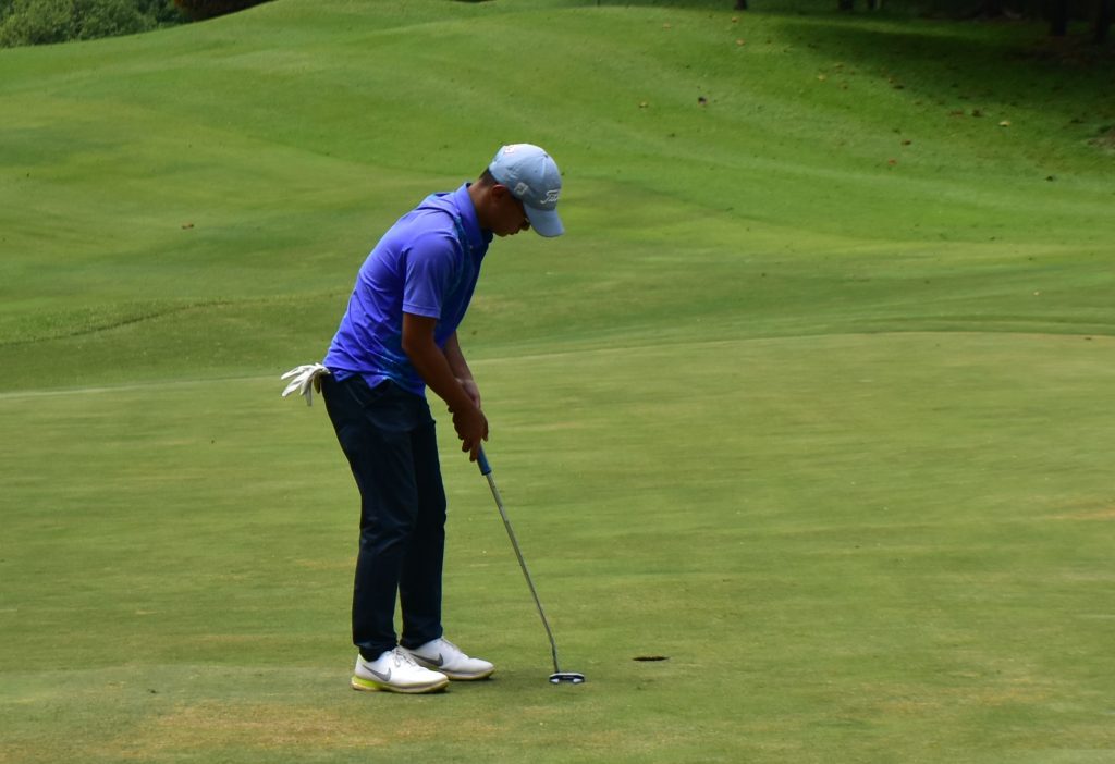 Pegolf junior Hayden Alden Suhasim yang bermain di Divisi A Putra bermain cemerlang tanpa bogey pada hari pertama Indonesian Junior Golf Premier League #1 di Riverside Golf Club, Bogor, Jumat (21/1). Amatir asal Jakarta ini mencetak 3-under 69, unggul dua pukulan atas Randy dari PGI Bekasi.