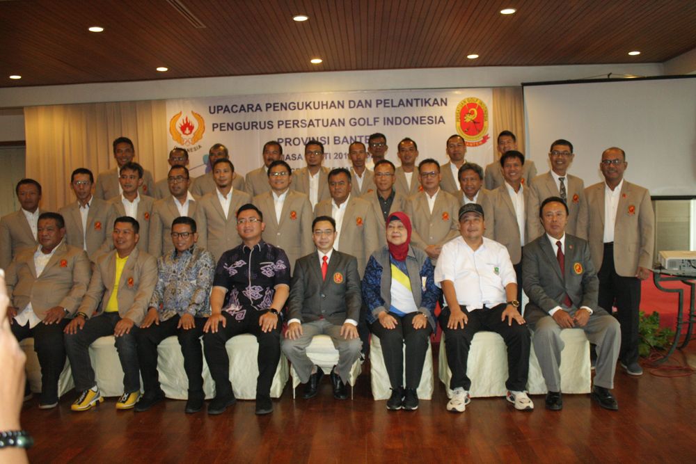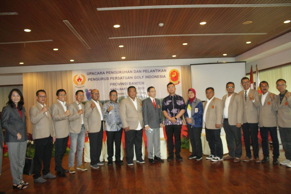 Pengurus PGI Provinsi Banten Masa Bakti 2019-2023 secara resmi dilantik oleh Sekretaris Jenderal Pengurus Besar Persatuan Golf Indonesia  (PB PGI)  Anthony Chandra di Modern Golf & Country Club, Tangerang, Banten pada Minggu (15/3/2020). H. Sahruji, SH dilantik sebagai Ketua Pengprov PGI Banten, sementara Wahyu Nurjamil, Widi Hartono, TB Samsul Ma’arif masing-masing menjadi Wakil Ketua I, II, dan III.